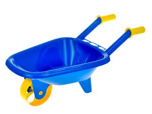 Plastové kolečko v modré barvě pro malé zahradníky nebo stavitele.