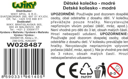 Kolečko plastové. Modrá barva. Rozměry - 46x25x37 cm.