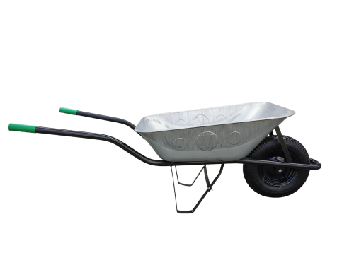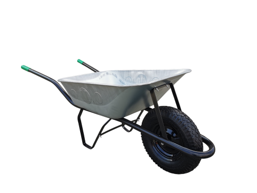Stavební kolečko 80l, nafukovací kolo, pozinkovaná korba. Toto kolečko se hodí jak na stavbu na převážení cihel, kamení a písku ale také na zahradu na dříví, padlé listí.
