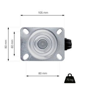 Otočné transportní kolečko o průměru 100 mm s dynamickou nosností 70 kg Vhodné například pro montáž na vozíky do dílny nebo do výrobních prostor, kde umožňuje efektivnější přepravu materiálů a výrobků …