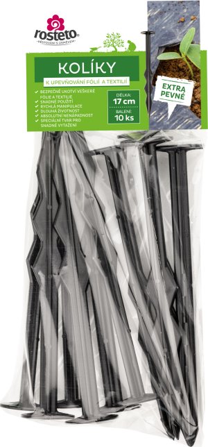 Praktický kolík z plastu k upevnění fólie, sítě, netkané textilie. Baleno v sadě po 10 ks.