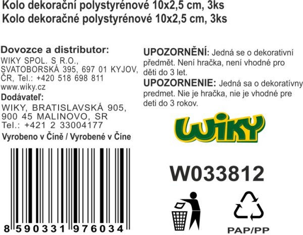 Kolo dekorační polystyrénové 10x2,5 cm, 3ks