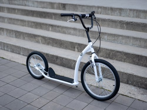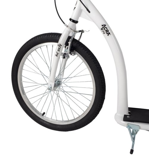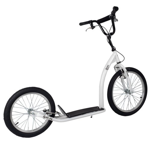 Poohlížíte se po rychlé koloběžce se stylovým designem? Sportovní koloběžka Acra Joy Aven je vhodná pro začátečníky i pokročilé jezdce. Využijete ji jak pro jízdu po silnici, tak na cyklostezce nebo v lehkém terénu. Pohodlně s ní dojedete do školy nebo do práce. Má nafukovací kola o velikosti 20” (přední) a 16” (zadní). Kvalitní rám z odlehčené oceli uveze jezdce o hmotnosti do 100 kg.