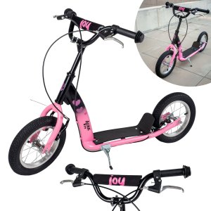 Kola jsou nafukovací a mají rozměr 12". Koloběžka během jízdy zajistí komfort. Pevná řídítka mají gumové rukojeti pro pohodlné a bezpečné držení. Díky konstrukci z kvalitní odlehčené oceli se vám s ní dobře zachází.