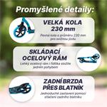 Kola jsou pevná a mají rozměr 230 mm. Koloběžka vám během jízdy zajistí komfort. Skládací řídítka mají gumové rukojeti pro pohodlné a bezpečné držení. Díky konstrukci z kvalitní odlehčené oceli se vám s ní dobře zachází.