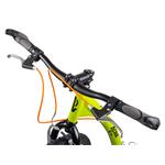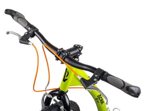 Koloběžka je vybavená účinnými V-brzdami. Řídítka s gumovými rukojeťmi a rohy se vám budou pohodlně držet. Mají výšku 95 cm a jsou pevná, koloběžka je tedy vhodná pro jezdce s maximální výškou postavy 190 cm. Jistě oceníte zadní blatník a bezpečnostní odrazky ve výpletech kol. Láhev si můžete odložit do praktického držáku, umístěného na rámu.
