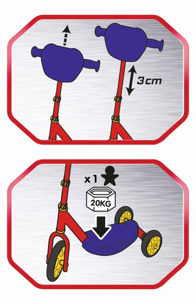 Koloběžka s oblíbeným autem Bleskem McQueenem v licenci Disney Cars. Má kovový rám, výškově nastavitelná řídítka (67 a 70 cm), 3 kolečka pro lepší stabilitu. Max. nosnost: 20 kg. Max. výška řídítek 70 cm. Rozměry: 56 x 70 x 32 cm. Hmotnost 2,16 kg.