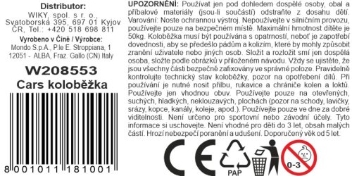 Kovová skládací koloběžka s motivy z animovaného filmu Cars-Auta.