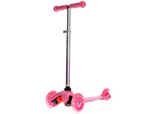 Koloběžka se 3 koly je ideální pro seznámení dětí s koloběžkou. Při jízdě děti zdokonalují motorické dovednosti, koordinaci, sportují a baví se. Růžová koloběžka má nastavitelná řídítka svítící LED kola. Vhodné pro děti od 24 měsíců.