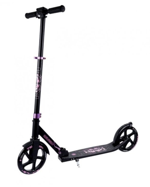 Skládací koloběžka se zadní blatníkovou brzdou. Koloběžka je lehká, snadno přenosná. Snížená úroveň stupátka nad povrchem. Hlavové složení se závitem. Koloběžka je vybavena stojánkem a předním blatníkem. Řídítka jsou opatřena eloxovanou objímkou pro zmírnění otřesů.