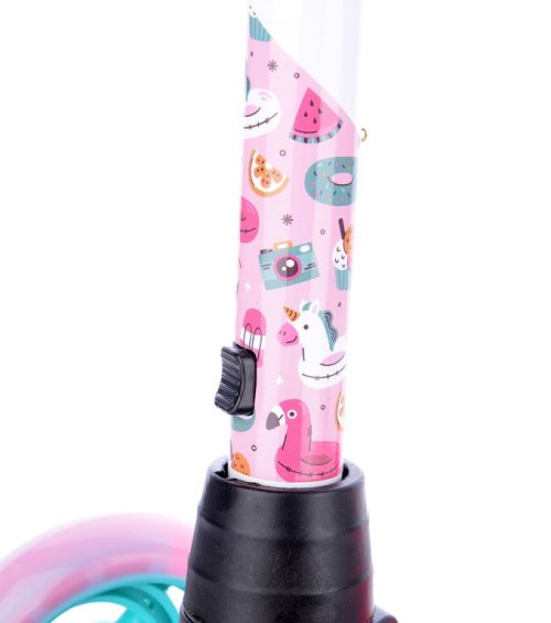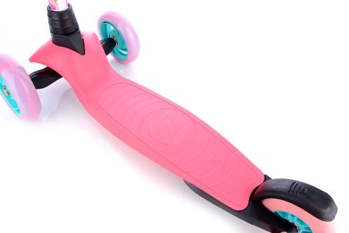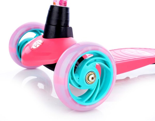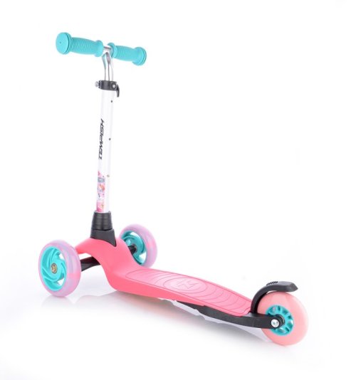 Bezpečná skládací koloběžka se zvýšenou stabilitou pro začínající sportovce. Přední náprava se natáčí klasicky jako u běžných koloběžek, nikoli přenášením váhy jezdce na stranu. Koloběžka má omezení maximálního úhlu vytočení.