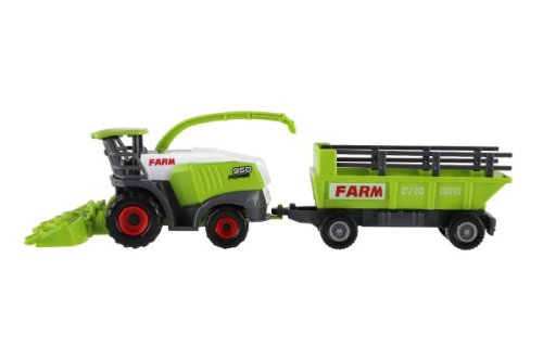 Detailně propracovaný kombajn v šedo-zeleném barevném provedení s velkou přední radlicí je věrnou kopií opravdové zemědělské techniky. Stroj disponuje bočním ramenem na výsyp a odnímatelným přívěsem. Je na volný chod. Rozměry balení 27 x 12,5 x 6 cm. Vhodné pro děti od 3 let.