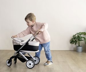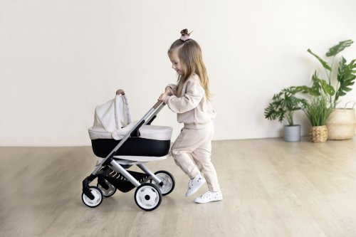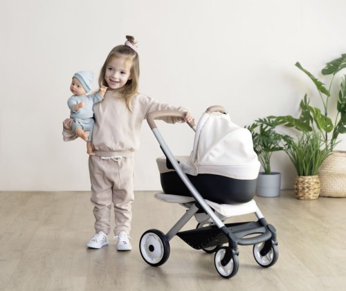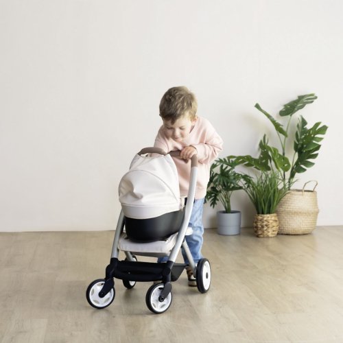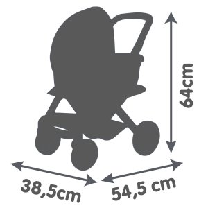 Všestranný kočárek pro panenky 3 v 1. Moderní multifunkční kočárek pro panenky lze díky vyměnitelné korbičce během chvilky přestavět na praktický sportovní kočárek pro panenky. Vrchní část lze v několika jednoduchých krocích sundat a panenku s sebou vzít kamkoli půjdete v praktickém košíku. Potahy kočárku jsou vyrobeny z robustní plastové tkaniny. Pro čištění je lze snadno otřít vlhkým hadříkem. Pro panenky do velikosti 42 cm. Panenka není součástí balení. Výška k ergonomické rukojeti je 65 cm. Přední kolečka otočná, kolečka s protihlukovou vrstvou. Průměr koleček 15,5 cm a 12,5 cm. Rozměry produktu (DxŠxV): 54,5 x 38,5 x 64 cm.