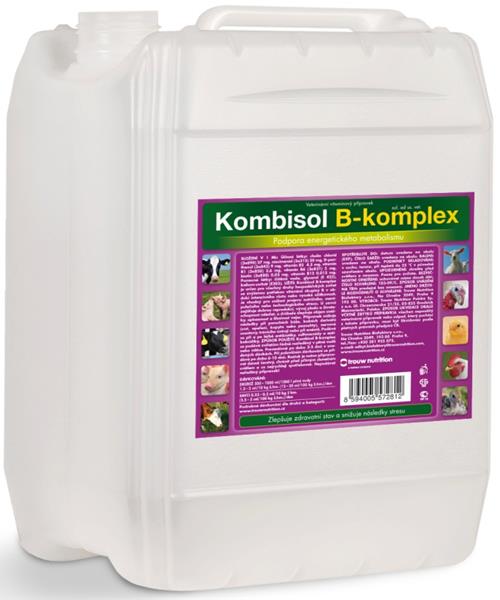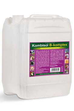 Problém: V období intenzivního růstu nebo vysoké užitkovosti je potřeba organismu dodat odpovídající množství energie. Základní zdroj energie tvoří vybalancovaná krmná dávka. V případě jakéhokoliv navýšení potřeby energie nad tuto hladinu může vést k poklesu užitkovosti, a tím ke snížení ekonomiky chovu. Složení v 1 ml: vitamin B1 3,6 mg, vitamin B2 4,5 mg, niacinamid 30 mg, vitamin B6 5 mg, biotin 0,03 mg, vitamin B12 0,015 mg, cholinchlorid 27 mg, D-panthenol 9 mg. Způsob aplikace: Kombisol B - komplex se podává zvířatům řádně rozředěný v pitné vodě nebo mléce. Preventivně po dobu 3 – 5 dnů v uvedených dávkách. Při polovičním dávkování se přidává po dobu 6 – 10 dnů. Roztok je nutno připravovat denně čerstvý, chránit před přímým slunečním světlem a co nejrychleji spotřebovat. Nepodávat neředěný přípravek! Dávkování: