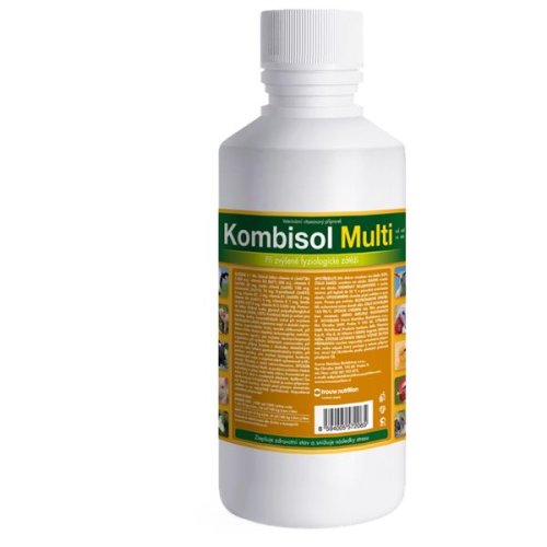 Problém: Při zvýšené fyziologické zátěži dochází v organismu k porušení vnitřního prostředí a jsou nastartovány metabolické procesy, které vedou k jejímu obnovení. Mnohé pochody jsou řízeny hormony, které vyžadují pro svoji syntézu vitaminy. Jejich nedostatek nebo nesprávná hladina takto snižuje užitkovost. Složení v 1 ml: vitamin A 5 000 m.j., vitamin D3 500 m.j., vitamin E 20 mg, cholinchlorid 100 mg, niacinamid 10 mg, D-panthenol 5 mg, vitamin B2 3 mg, vitamin B1 3 mg, vitamin B6 2 mg, vitamin K 1 mg, biotin 0,015 mg, vitamin B12 0,005 mg. Způsob aplikace: Kombisol Multi se podává zvířatům řádně rozředěný v pitné vodě nebo mléce. Preventivně po dobu 5 – 15 dnů v uvedených dávkách. Aplikaci lze opakovat po 3 – 4 týdnech. Roztok je nutno připravovat denně čerstvý, chránit před přímým slunečním světlem a co nejrychleji spotřebovat. Nepodávat neředěný přípravek! Dávkování: