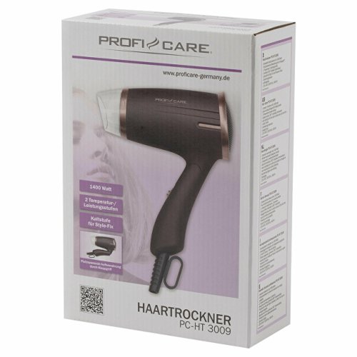 Kompaktní vysoušeč vlasů HT 3009 je vhodný jak pro domácí použití, tak díky svým rozměrům a sklopné rukojeti i pro cestování. Jeho výkon 1 400 W se však dorovná profesionálním vysoušečům vlasů. Tento fén lze provozovat ve 2 teplotních stupních, nechybí zde však ani studený vzduch pro konečné úpravy a stylování vlasů. Model HT 3009 je na rukojeti vybaven závěsným okem pro pohodlnější skladování. Chybět nesmí ani ochrana proti přehřátí.