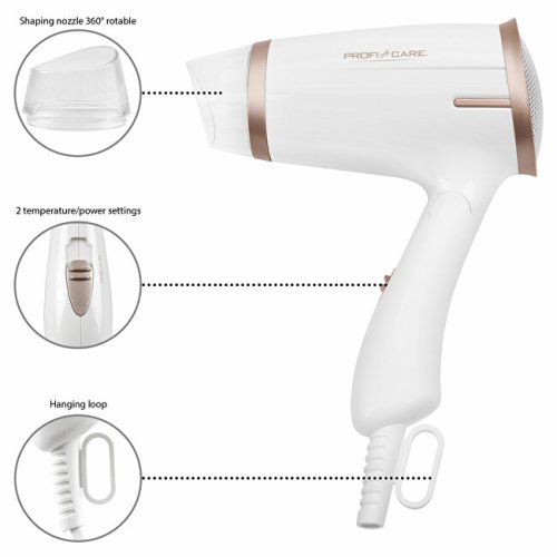 Kompaktní vysoušeč vlasů HT 3009 je vhodný jak pro domácí použití, tak díky svým rozměrům a sklopné rukojeti i pro cestování. Jeho výkon 1 400 W se však dorovná profesionálním vysoušečům vlasů. Tento fén lze provozovat ve 2 teplotních stupních, nechybí zde však ani studený vzduch pro konečné úpravy a stylování vlasů. Model HT 3009 je na rukojeti vybaven závěsným okem pro pohodlnější skladování. Chybět nesmí ani ochrana proti přehřátí.