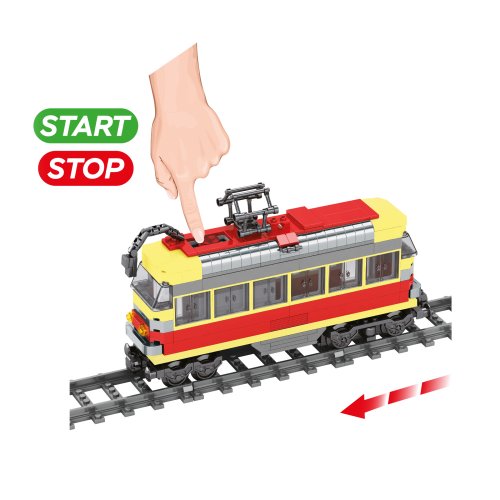 Představujeme úžasnou stavebnici tramvaje s kolejemi a zastávkou, která je ideální pro všechny malé i velké stavitele a milovníky dopravních prostředků! V balení naleznete 724 dílků, ze kterých si postavíte detailně propracovanou tramvaj (2 vozy) a trať se zastávkou. Po složení má dráha rozměry 96 x 70 cm a je složena z 16 zahnutých a 4 rovných kolejí. Tramvaj je plně funkční – po vložení 6 ks baterií typu AAA (nejsou součástí balení) a zapnutí tlačítka na střeše se rozjede po kolejích. Aby tramvaj správně fungovala, je třeba pevně propojit kablík s konektory z krabičky s bateriemi do podvozku. Tato stavebnice nabízí nejen zábavu, ale také rozvíjí technické dovednosti a představivost. Ideální dárek pro všechny nadšence dopravy! Vhodné pro děti od 6 let. Stavebnice je plně kompatibilní se všemi podobnými známými stavebnicemi. Hračka se automaticky zastaví po 5 minutách chodu.