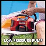 Nízkotlaká pumpa umožňuje nafouknutí matrací a gumových člunů bezprostředně před použitím. Funkce nízkotlakého sání vám pomůže z nafukovacích doplňků vzduch rychle vyfoukat. Přepínání mezi vysokotlakou a nízkotlakou pumpou je velmi snadné.
