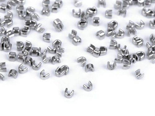 Kovové koncovky se nasazují na horní konce zipu, aby z nich nevyjel jezdec. Připevníte je tak, že je nasadíte na spirálu a lehce přicvaknete kleštěmi. [Koncovky se hodí pro spirálové a kovové zipy, nejsou vhodné pro kostěné zipy.]
