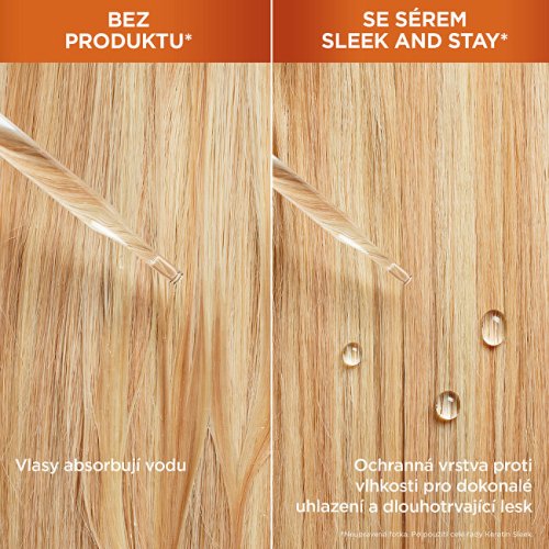 Keratin Sleek kondicionér představuje druhý krok v 4fázové uhlazující rutině pro dosažení perfektně hladkých, lesklých a snadno upravitelných vlasů. Je určen pro suché a krepaté vlasy, které potřebují intenzivní uhlazení a výživu. Složení obohacené o rostlinný keratin, arganový olej a uhlazující komplex okamžitě působí na vlasové vlákno, vyhlazuje jeho povrch a pomáhá eliminovat krepatění. Výsledkem jsou až o 93 % lesklejší vlasy s hladkým, elegantním vzhledem.