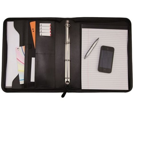 Konferenční desky z měkké koženky (imitace kůže) Moderní design, prošití Vnitřní kapsy pro dokumenty, tablety a karty 4-kroužkový mechanismus, výška 30 mm Vložená podložka A4 a držák pera Rozměry: 26,0 …