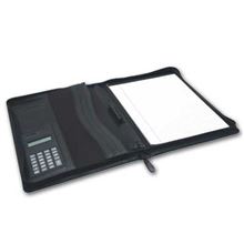 Konferenční desky z černé syntetické kůže uzavíratelné na zip Obsahují poutka na psací potřeby a různé přihrádky Součástí je poznámkový blok a kalkulačka Barva: černá