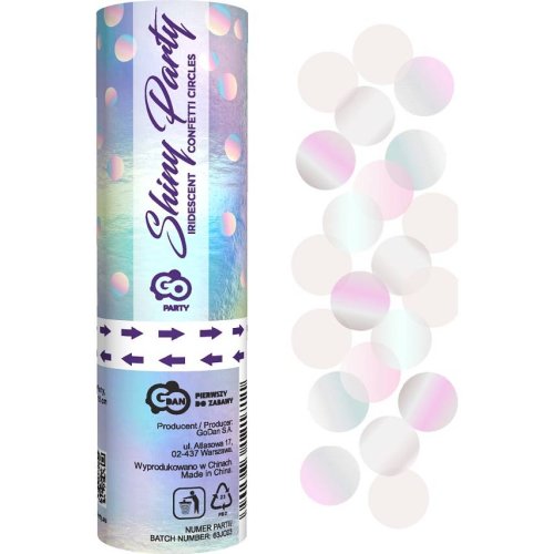 Konfety Shiny party vystřeluje fóliová konfetová kolečka. Velikost 15 cm.