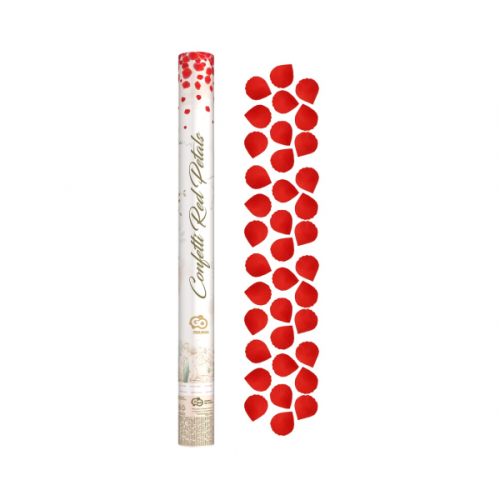 Konfety vystřelující červené plátky růží. Délka trubice je 60 cm.