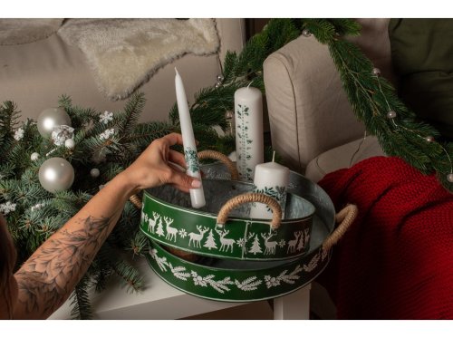 Kónická 22x230mm potisk Větvičky zelené, bílá svíčka