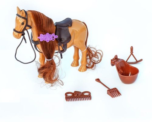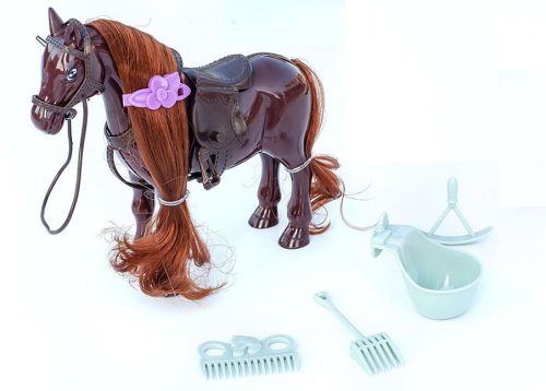Koník v 2 barvách. Balení obsahuje koníka, sponku do koníkovy hřívy, hřebínek a další doplňky.