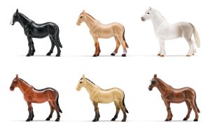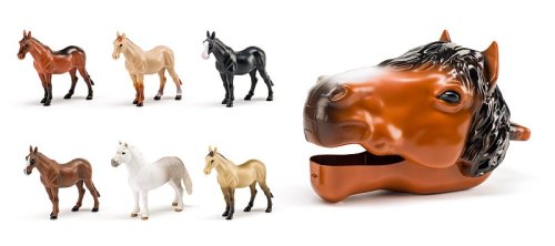 Vydejte se na ranč s úžasnou koňskou hlavou, která v sobě ukrývá figurky pro všechny malé milovníky koní. Koňská hlava slouží jako praktický úložný box – pojme všechny figurky a díky madlu ji děti snadno kamkoliv přenesou. Stačí stisknout tlačítko pod čumákem a tlama se otevře – hra může začít! Díky click systému lze tlamu otevřít v několika úhlech. Uvnitř se skrývá sada šesti koní v různých barvách. Celý set je zabalen v open boxu s vnitřním potiskem pastvin, který lze využít jako součást hry nebo jako originální výstavní dekoraci. Obsah sady: 1x koňská hlava, 1x černý kůň, 1x tmavě hnědý kůň, 1x hnědý kůň, 1 x achaltekinský kůň, 1x béžový kůň, 1 x kůň grošák. Vyrobeno z kvalitního plastu. Rozměry hlavy: 18,5 x 18 x 31 cm. Rozměry figurky: 9 x 3 x 9,5 cm. Rozměry balení: 22 x 32 x 19 cm. Nevhodné pro děti do 3 let. Věk: 3+
