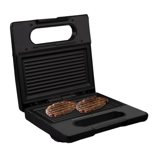 - elektrický domácí kontaktní gril s nepřilavým povrchem- flexibilní použití, skvěle kombinuje stolní gril pro přípravu masa a panini gril na přípravu baget a sendvičů- ideální pro grilování masa, steaků, …
