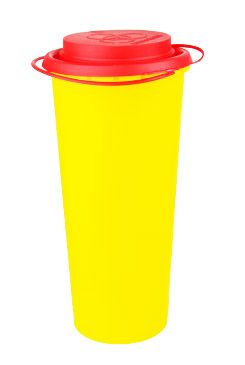 Nádoba na kontaminovaný odpad k jednorázovému sběru nebezpečných odpadů, především injekčních stříkaček, jednorázových jehel, skalpelů, pipet, ampulí apod.