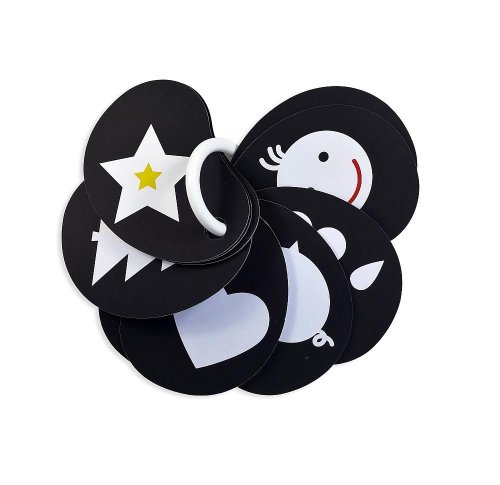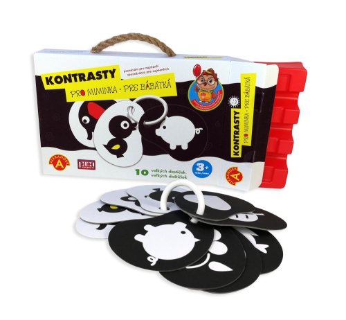 Kontrasty jsou vhodné pro miminka od 3 měsíců, kdy zaostřují svůj zrak na obrysy, ostré hrany a začínají používat hmat. Kartičky mají proto různé tvary a barevné rozložení pro první seznámení s tvary a obrysy.