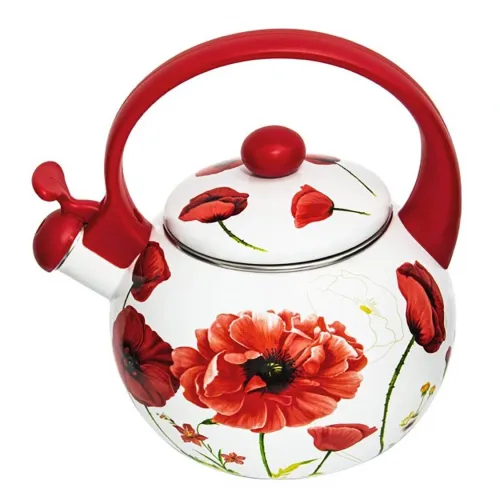 Kvalitní čajová konvice vyrobená z nerezové oceli se smaltovaným povrchem zvenku i uvnitř.
