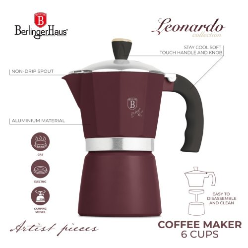 Začněte den vůní čerstvě připraveného espressa, které si zamilujete už při prvním doušku. Tato elegantní moka konvice v matném bordó provedení vnese do vaší kuchyně nejen styl, ale i tu pravou kávovou atmosféru. Díky hliníkovému tělu se rychle zahřeje, snadno se používá a spolehlivě připraví až šest šálků silné, aromatické kávy – ideální pro rodinu nebo posezení s přáteli. Měkká rukojeť a knoflík na víčku zajišťují pohodlí a bezpečnost i při manipulaci s horkou konvicí. A údržba? Ta je hračka.