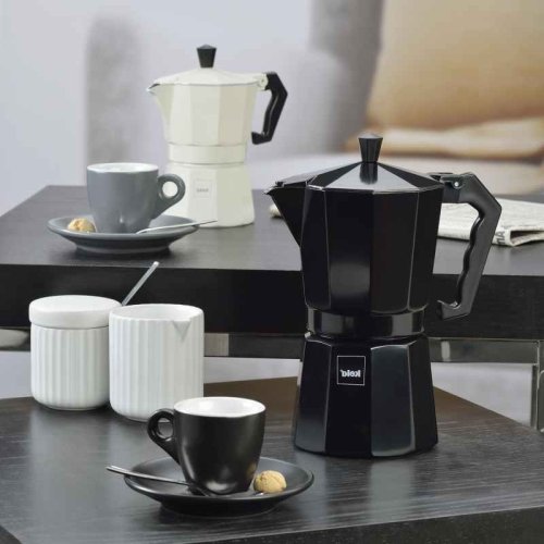Klasika mezi kávovary: konvička na espresso ITALIA vyrobená z hliníku v béžové barvě. Příprava espressa nemůže být snazší: nalijte vodu a kávu do konvice na espresso ITALIA, položte na sporák a za chvíli je espresso hotové: se správným aroma kávy, horké a lahodné. Na 3 šálky (150 ml). Vhodné na elektrický sporák, sklokeramickou desku, plynový sporák, sálavé.Hliník 8cm, 13cm v na 3 šálky