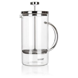 Presovač ze skla a nerezu na přípravu kávy i čaje.