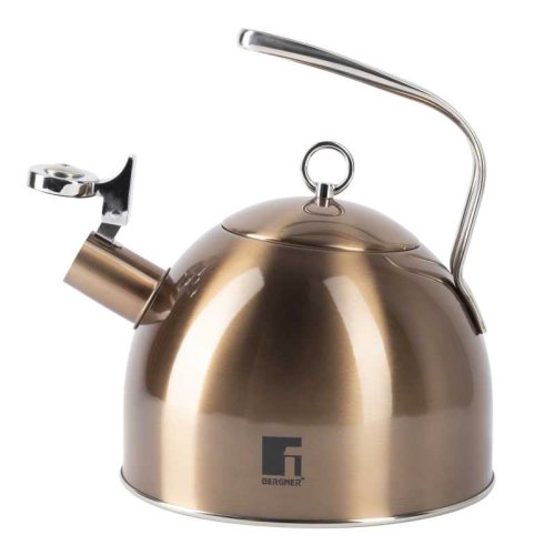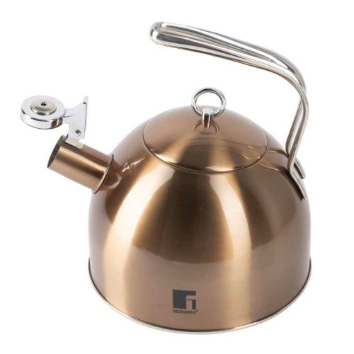 • 2,5L pískací konvice.• Vyrobeno z odolné nerezové oceli.• Vhodné pro všechny zdroje tepla včetně indukce.• Vnější tělo v měděné barvě. • Nerezová drátěná rukojeť.• Snadné čištění. Připravte si lahodné čaje nebo kávu s naší klasickou pískací konvicí o objemu 2,5 l vyrobenou z odolné a odolné nerezové oceli, která při dosažení bodu varu píská. Díky nerezové drátěné rukojeti můžete konvici bezpečně zvedat a přenášet všude tam, kde chcete podávat své oblíbené čaje. Používejte jej, kdekoli chcete, protože je vhodný pro jakoukoli varnou desku, včetně indukce. Elegantní design v měděné barvě a zakřivené linie pro snadné čištění. Pro prodloužení životnosti výrobku se doporučuje ruční mytí.