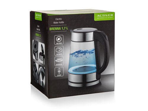 Moderní varná konvice BRENNA s plochým dnem a skleněným tělem je nedílnou součástí každé kuchyně. Při provozu je obsah konvice osvícený vestavěnými LED diodami, podtrhující celkový luxusní vzhled konvice. Konvice je vybavena ochranou proti přehřátí, má základnu se středovým konektorem - volně otočný o 360 stupňů, vyjímatelný, omyvatelný filtr a automatické / manuální vypnutí.