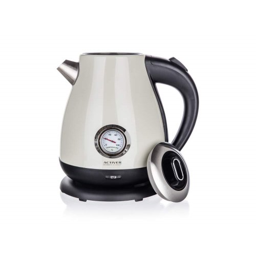 Moderní dvoustěnná varná konvice EBBA s plochým dnem a nerezovým tělem, o objemu 1,7 l, je stylovým doplňkem každé kuchyně. Pomocí analogového teploměru můžete sledovat teplotu vody. Konvice je vybavena ochranou proti přehřátí, má základnu se středovým konektorem - volně otočný o 360 stupňů, vestavěný filtr proti hrubým nečistotám a automatické / manuální vypnutí.