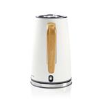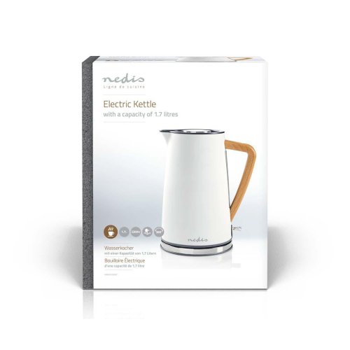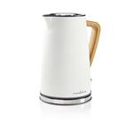Stylová rychlovarná konvice o objemu 1,7 litru. Skryté topné těleso s výkonem 1850 až 2200 W a vyjímatelný filtr vodního kamene zaručují, že voda vždy rychle dosáhne varu. Mezi další přednosti patří otočná 360° základna a ochrana zamezující zapnutí konvice, ve které není dostatek vody. Díky kombinaci nerezové oceli, dřeva a gumy (Soft-Touch) představuje tato konvice stylový, odolný a snadno omyvatelný doplněk do vaší kuchyně. Přívodní kabel je možné navinout na základnu pro pohodlné skladování.