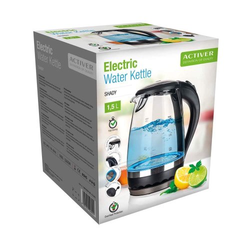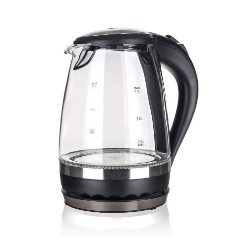 Konvice rychlovarná SHADY 1,5 l, skl. / ČER, LED, 1850 - 2200 W.