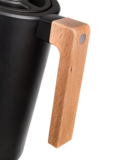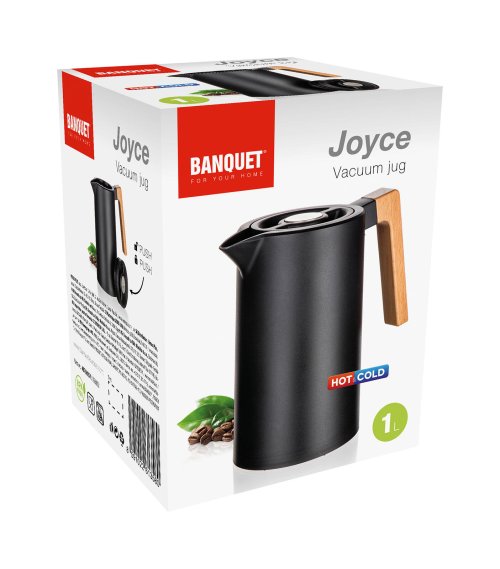 Termokonvice JOYCE má vakuově izolované tělo. Vnitřní část je vyrobena z nerezu 304, vnější část z nerezu 201 a plášť je z plastu (PP). Termokonvice je vhodná pro teplé i studené nápoje. Ve víčku termokonvice je kulatá pojistka - termo- bezpečnostní uzávěr, díky kterému je možné nalévání nápoje bez odšroubování víčka, stačí jednoduše zatlačit pojistku. Po opakovaném zatlačení pojistky je konvice uzavřená.