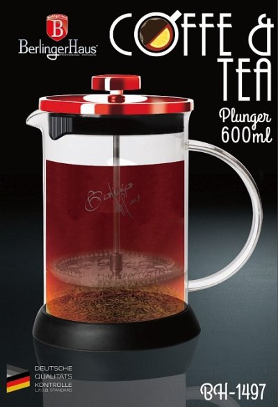 Konvička na čaj a kávu French Press 600 ml Burgundy Metallic Line BH-1497