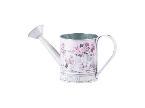 Plechová konvička s květinovým motivem v barevném provedení, ideální pro dekorace. Její rozměry jsou 300 x 115 x 145 mm.