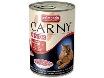 Konzerva s hovězím masem a krůtím srdcem. Kompletní krmivo pro kočky od 7 let.
