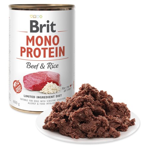 Monoprotein – konzerva obsahuje pouze maso a vnitřnosti z jednoho živočišného zdroje. Nalezení toho, co škodí psům s citlivým zažíváním, intolerancí nebo s alergií, může být běh na dlouhou trať, ve kterém nám mohou pomoci konzervy s jedním druhem proteinu. Vylučovací metodou lze snadno vyřadit vše škodlivé. Protože někteří psi s citlivým zažíváním špatně tráví větší kousky masa či vnitřností, mají konzervy Brit Monoprotein konzistenci jemného paté – lépe se tráví a snadno je přijímají také psí senioři, kteří mají problém se zuby. Hlavní přednosti: