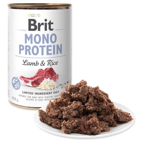 Monoprotein – konzerva obsahuje pouze maso a vnitřnosti z jednoho živočišného zdroje. Nalezení toho, co škodí psům s citlivým zažíváním, intolerancí nebo s alergií, může být běh na dlouhou trať, ve kterém nám mohou pomoci konzervy s jedním druhem proteinu. Vylučovací metodou lze snadno vyřadit vše škodlivé. Protože někteří psi s citlivým zažíváním špatně tráví větší kousky masa či vnitřností, mají konzervy Brit Monoprotein konzistenci jemného paté – lépe se tráví a snadno je přijímají také psí senioři, kteří mají problém se zuby. Hlavní přednosti: